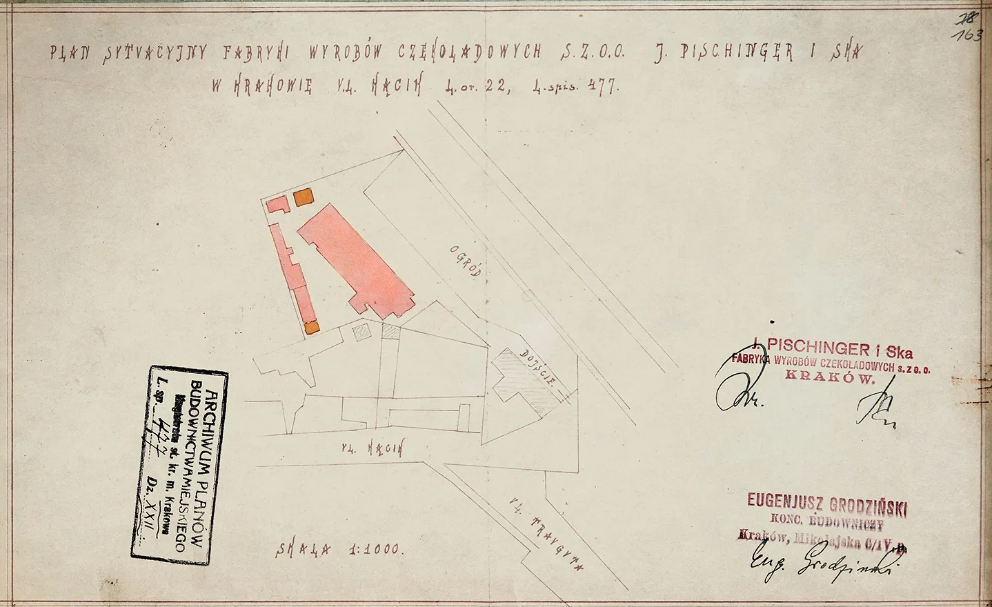 One of the factories that changed hands and had many names was "Pischinger i Spółka" factory, a limited liability company, operating at 1 Konfederacka Street in Kraków-Dębniki (1922/1923). At that time, it was also known as Chocolate and Chocolate Products Factory, producing chocolate products and tortes.