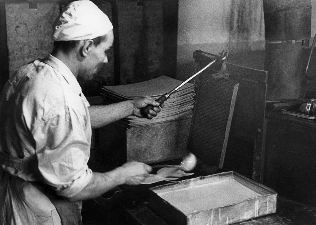 This is what wafer baking used to look like (photo from the Suchard factory, ca. 1940, National Digital Archives).