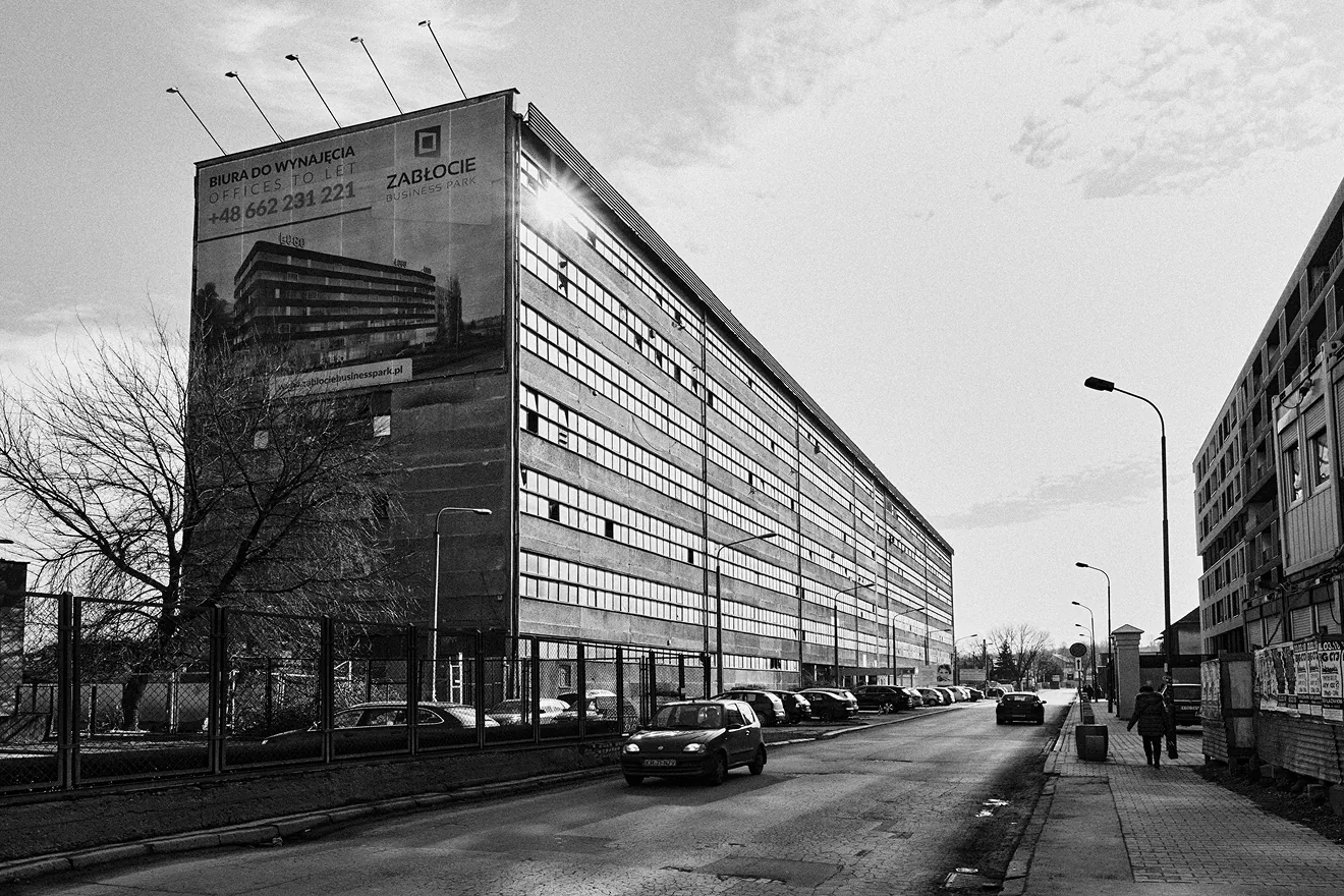 Anecdote: The railway sidings of the Kraków-Wisła cargo bay were also used by industrial plants in Zabłocie after the war. During the protest strikes at Telpod, a wagon arrived to unload from Ślusarska Street, but the employee on shift was surprised, having received no information about the new unloading and failing to open the gate. It turned out that the wagon was carrying troops of ZOMO to pacyfy the strikers.