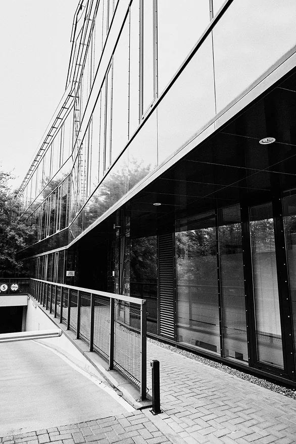 One of the first modern office buildings in Zabłocie (2010). A glazed building with architecture reminiscent of the rare black diamond (carbonado), which has a multi-crystal structure and its colour results from the presence of numerous inclusions (graphite, pyrite or haematite). Similarly, Diamante Plaza has an irregular line, blending into the outline of the plot. The shape of the building was completely determined by the course of the border with the railway embankment.